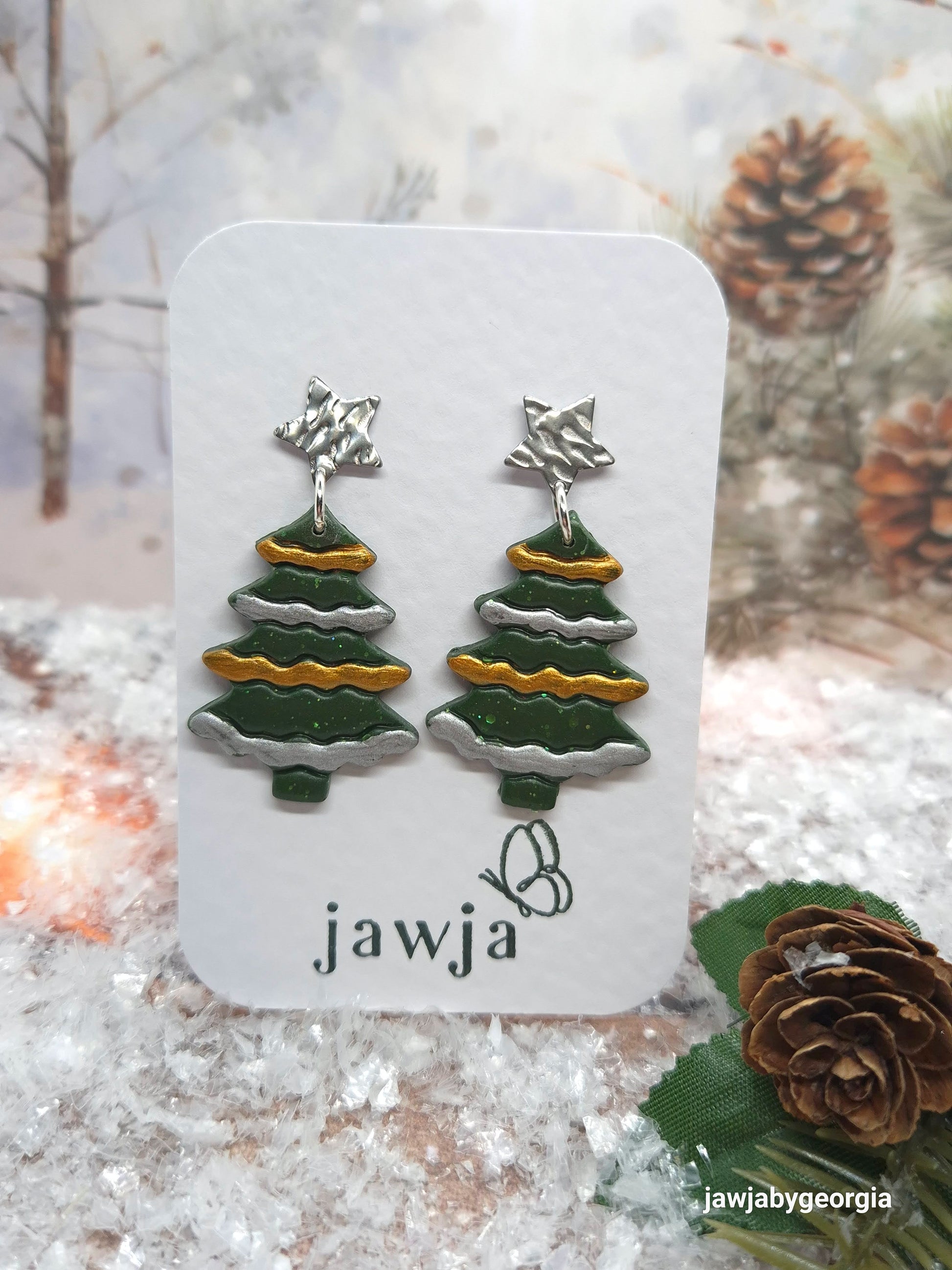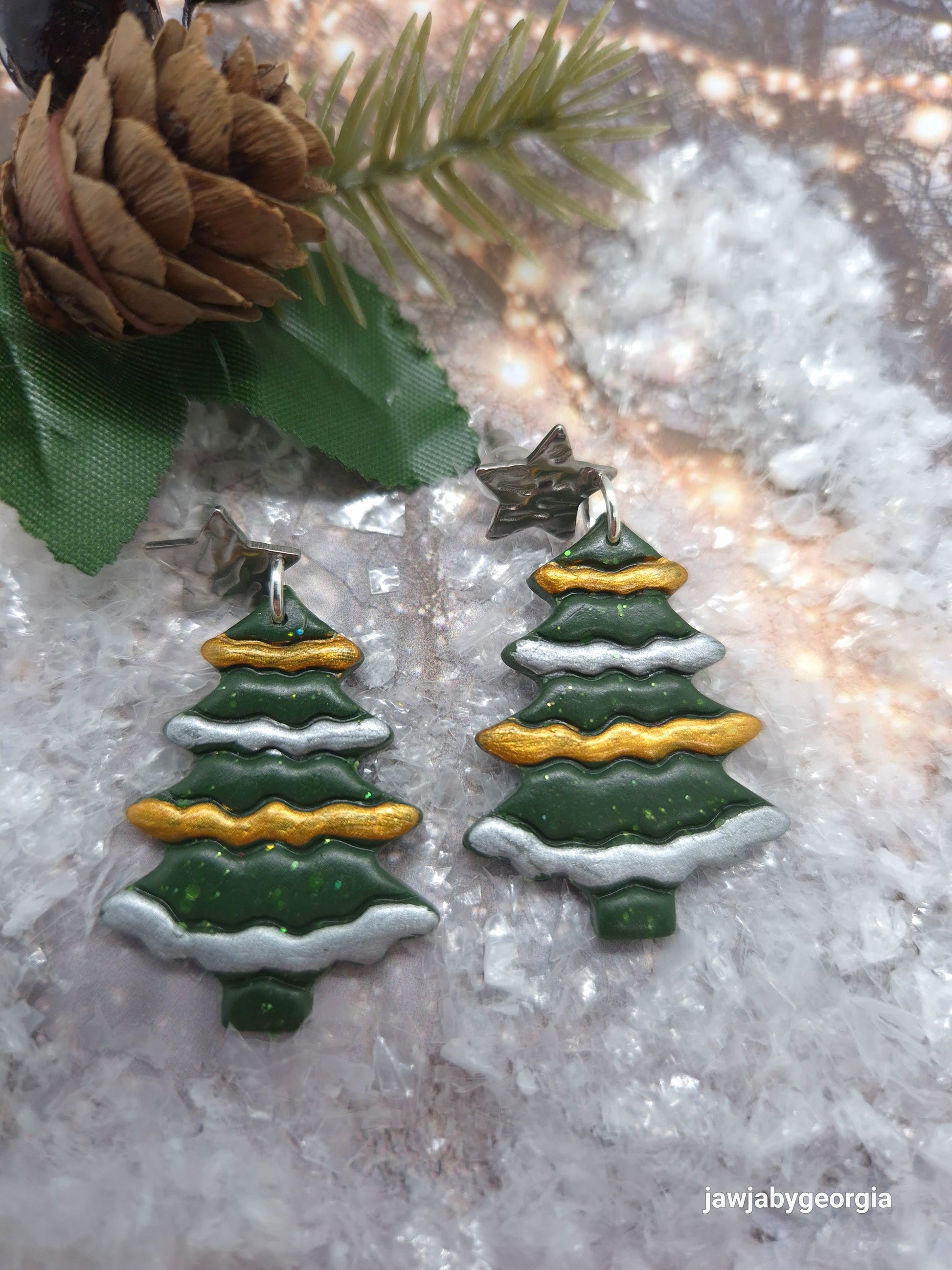 Christmas tree earrings with gold and silver
