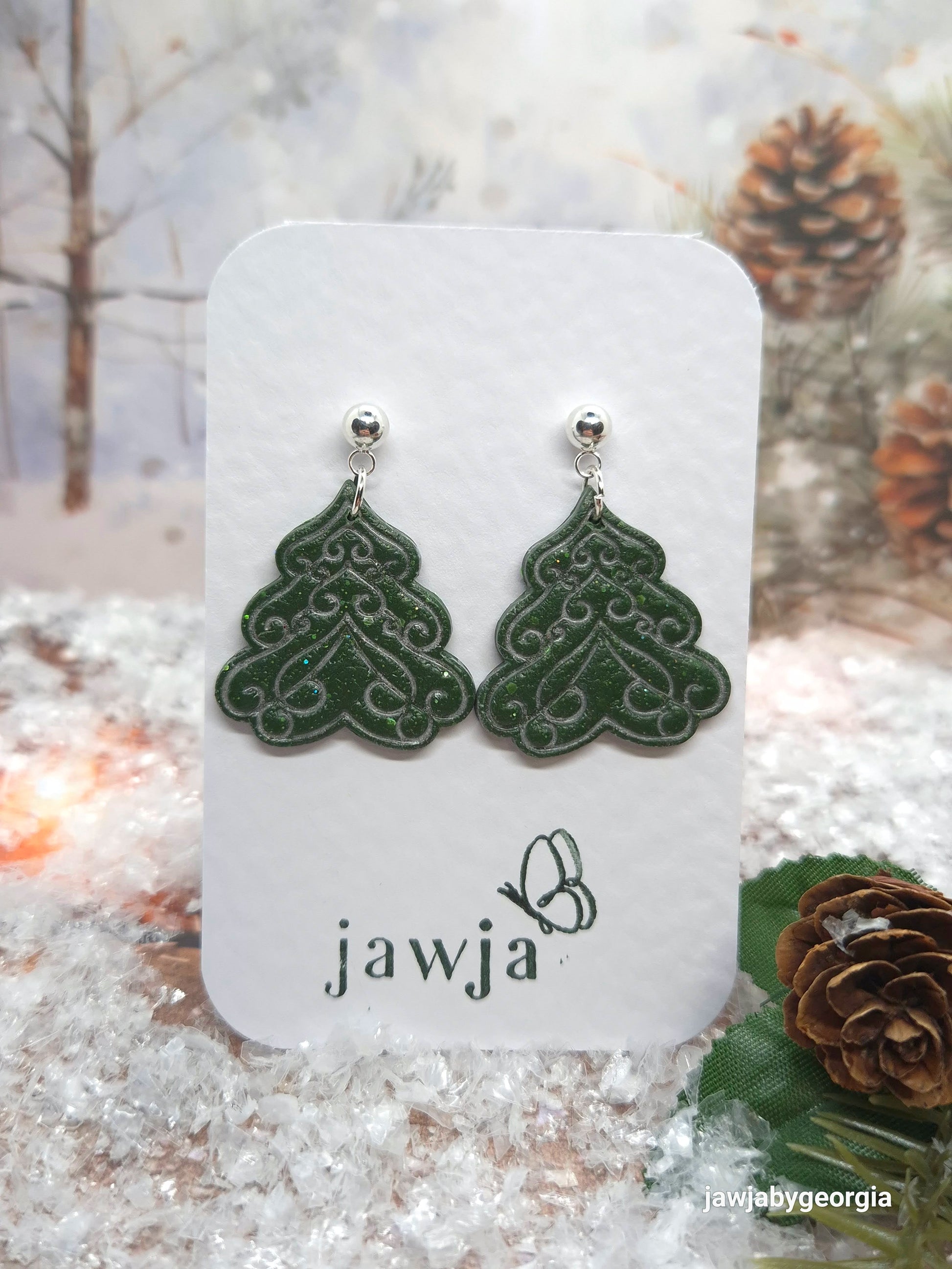 EMBOSSED CHRISTMAS TREE POLYMER CLAY EARRINGS