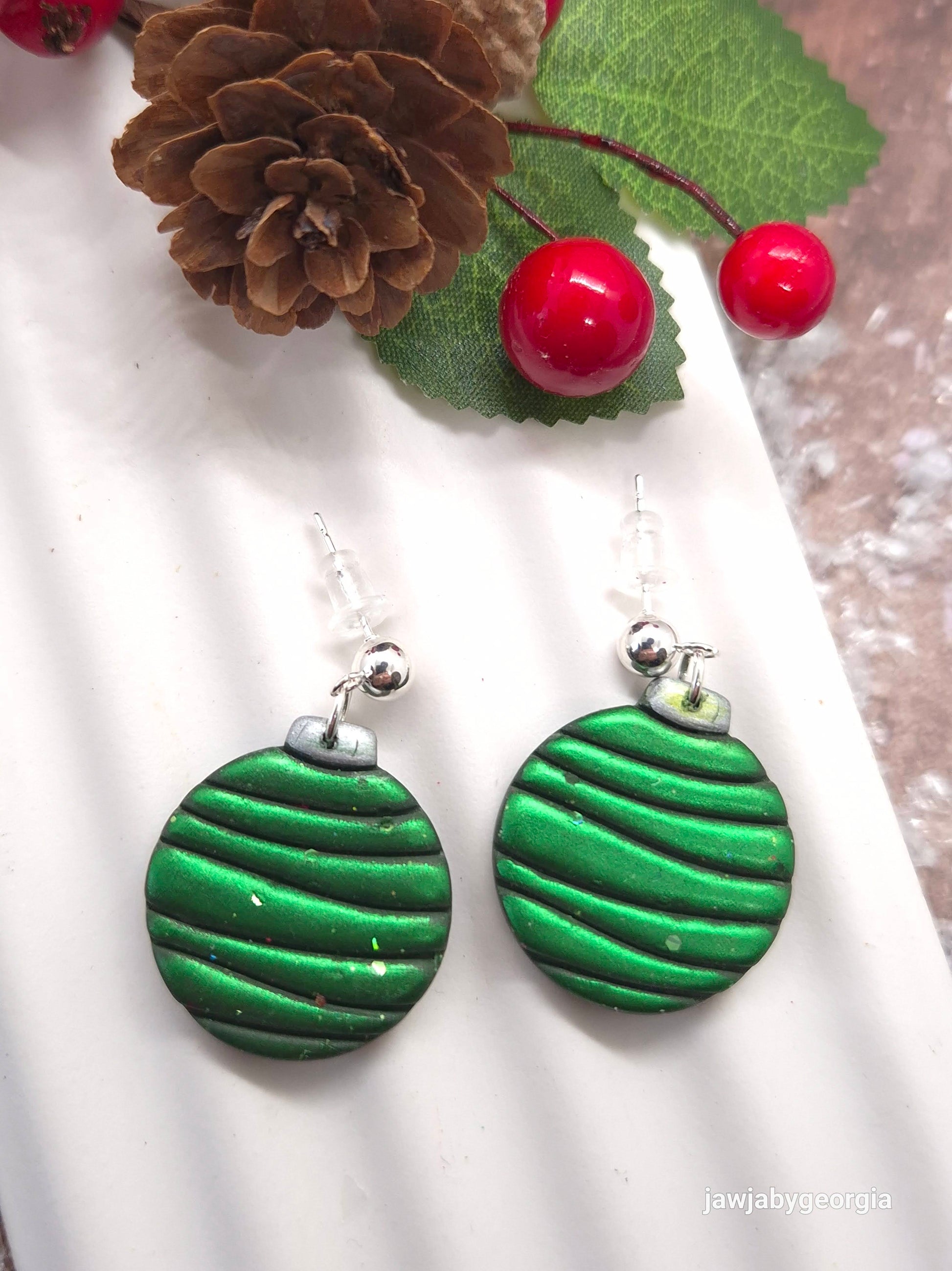 GREEN BAUBLE POLYMER CLAY EARRINGS