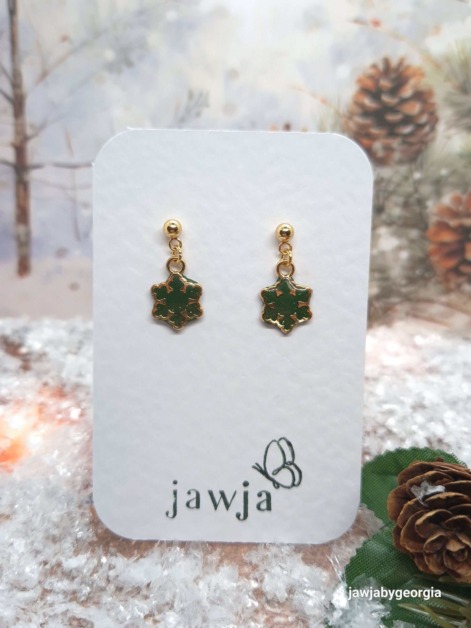 GREEN SNOWFLAKE POLYMER CLAY EARRINGS