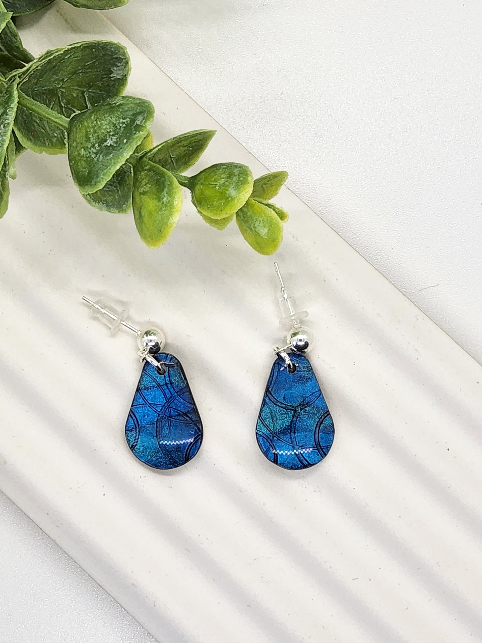 IRIDESCENT BLUE TEARDROP POLYMER CLAY EARRINGS
