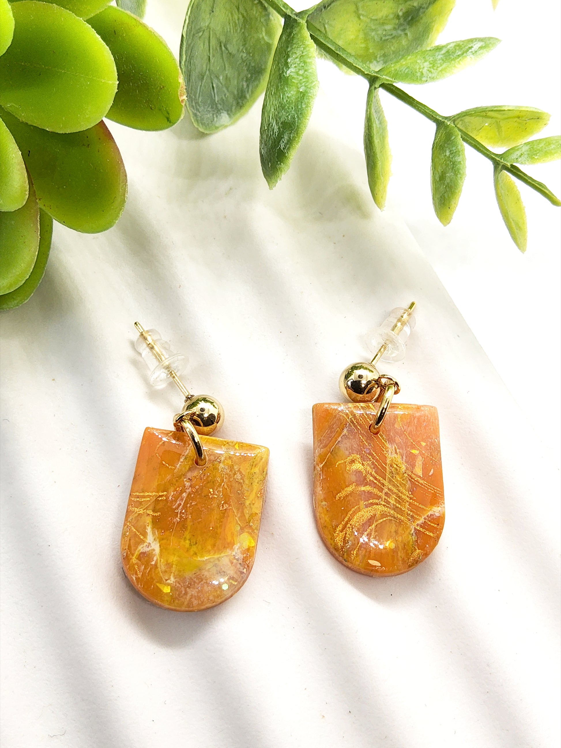 ORANGE MARBLE POLYMER CLAY EARRINGS