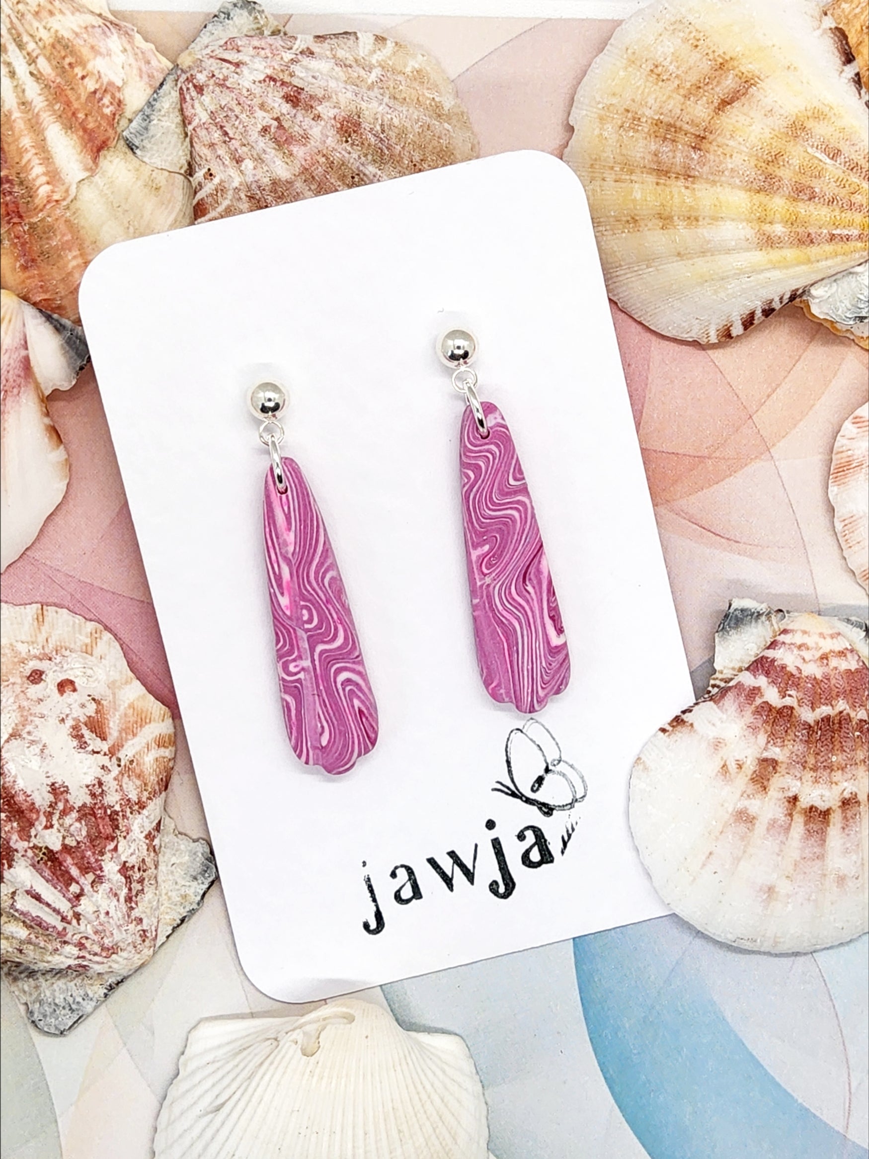 PINK MARBLED TEARDRIP POLYMER CLAY EARRINGS