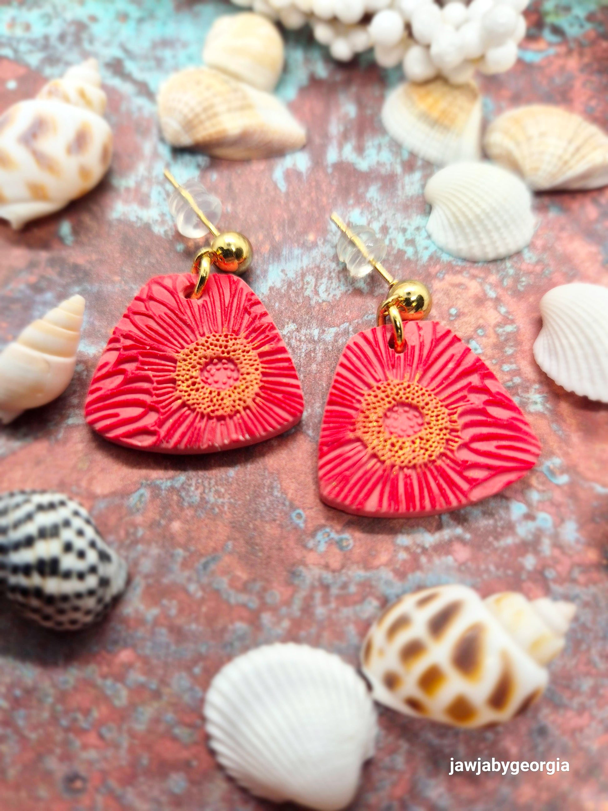 The vivid red and gold tones bring warmth and confidence to any outfit — perfect for brightening up both casual and dressy looks and, being made from polymer clay, makes them lightweight and comfortable for all-day wear.